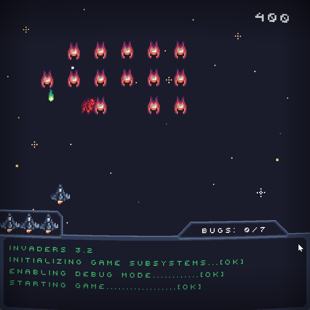 The studio is working on their first game, coincidentally also called "Space Buggers", and they need you to find all bugs in the game before it's released.
